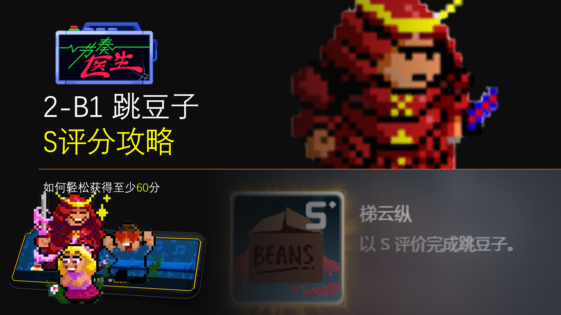 在《节奏医生》正式版中“纵云梯”这个成就解锁条件是以S评价完成2-B1;