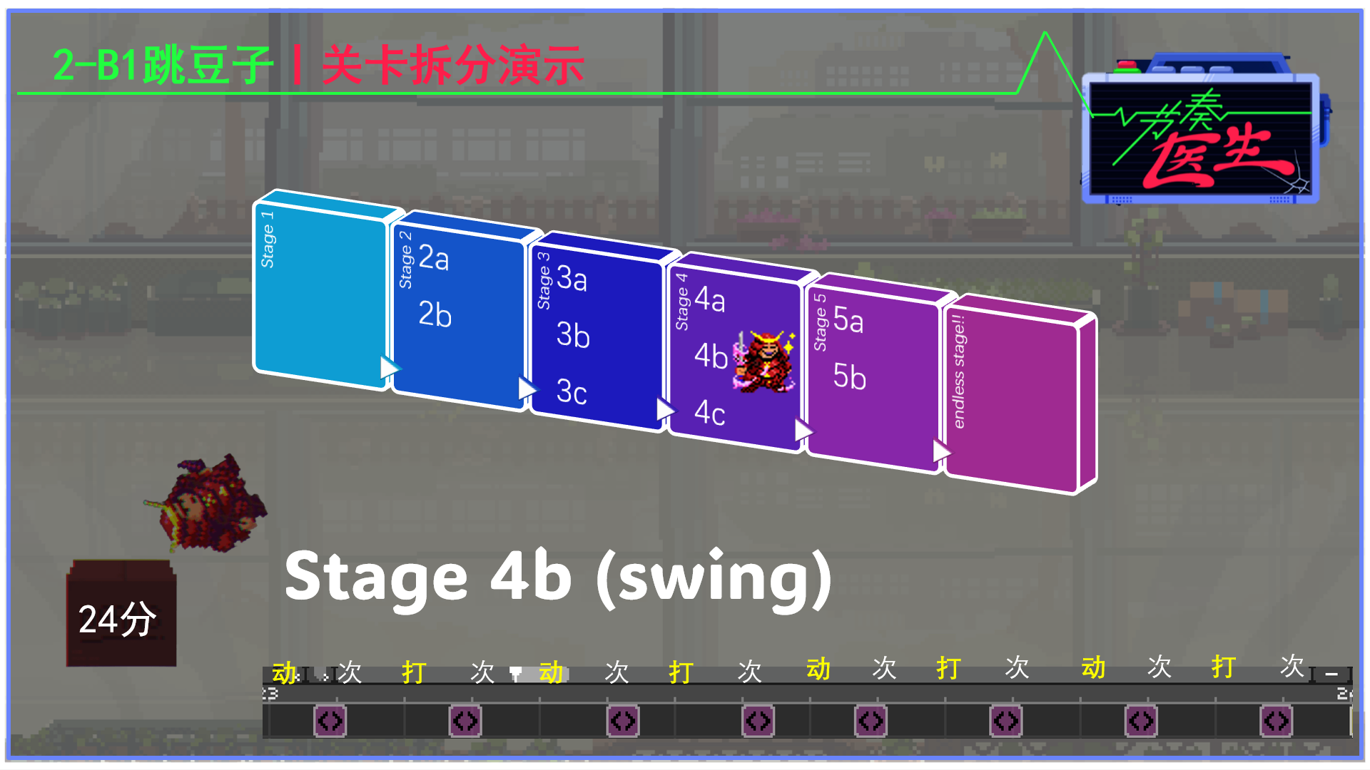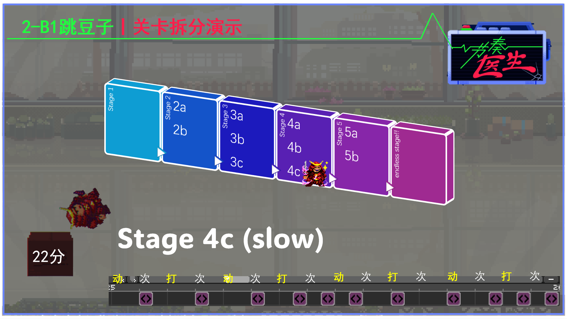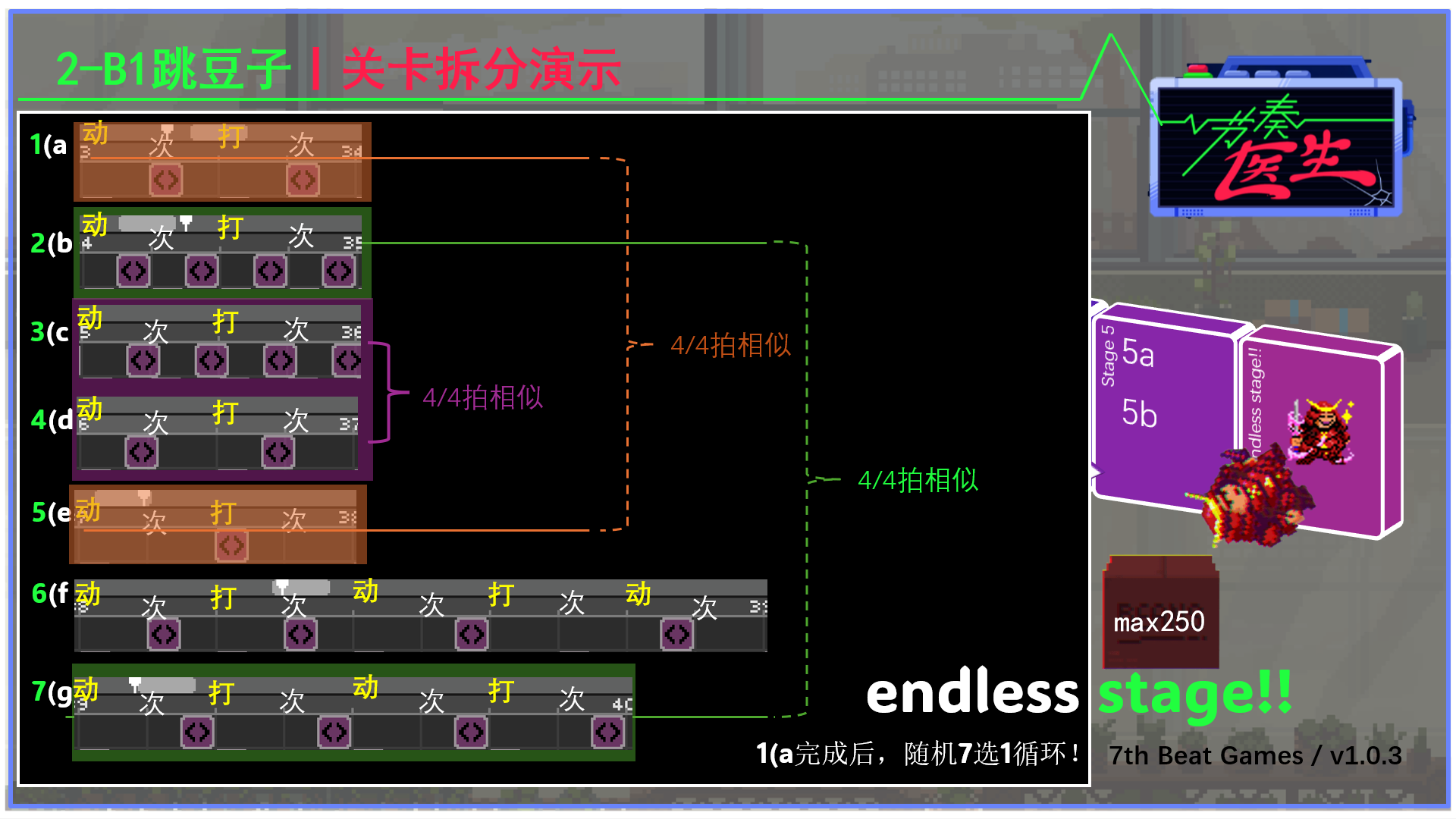 Stage3,若随机到4b部分,那完成4b必定要进入4c。 - 另一个特例:虽然谱面组成有
