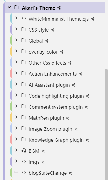 你可以增加你自己设计的拓展功能,要配置新功能前,先把Akari's-Theme笔记的两个属性去掉,否则会导致关系配置时搜不到配置文件。等配置好后再把这两个属性加回去。