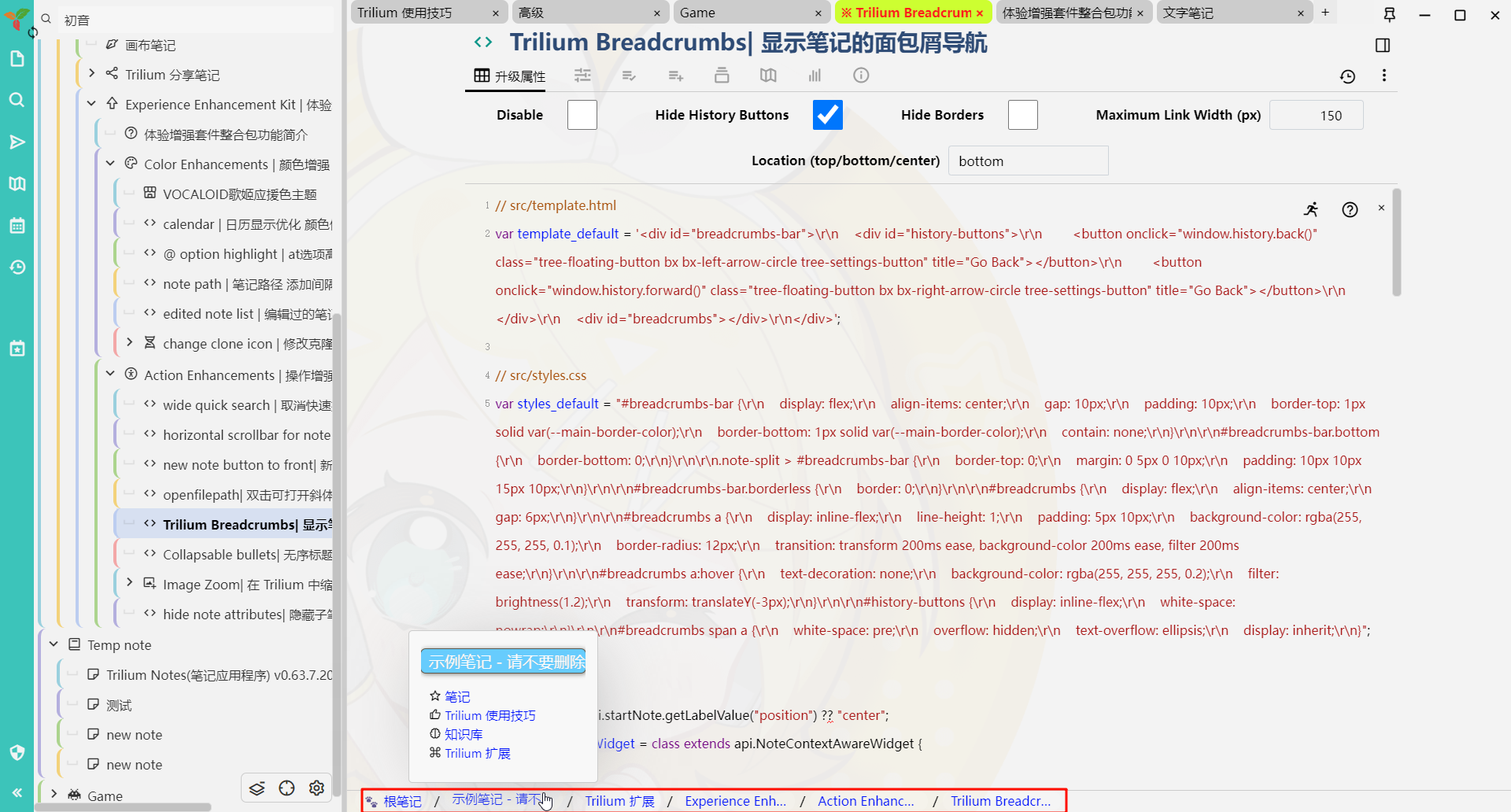 2.5 Trilium Breadcrumbs| 显示笔记的面包屑导航