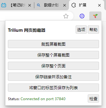 - 附加内容:我汉化了Trilium Web Clipper浏览器拓展插件:trilium_web_clipper-1.0.1-chrome-cn.zip