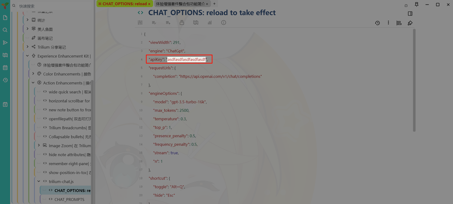 - 大佬开发的插件——trilium聊天AI机器人是真的很有潜力,但是由于ChatGpt在国内直连访问不能使用,直接阻碍了国内大多数普通用户想要用上这个聊天AI机器人插件的可能性。但是经过与国内AI的多轮对话测试,大佬的这个插件的模型,是可以简单的替换为其他的模型,我验证了Kimi 是确实可行的。不过需要注意的有一点: