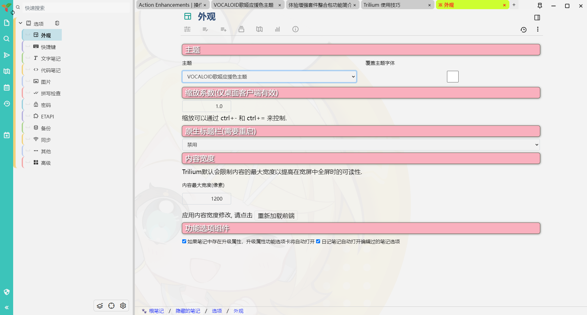 - 增加参考设置建议及trilium笔记中会常用到的markdown写法