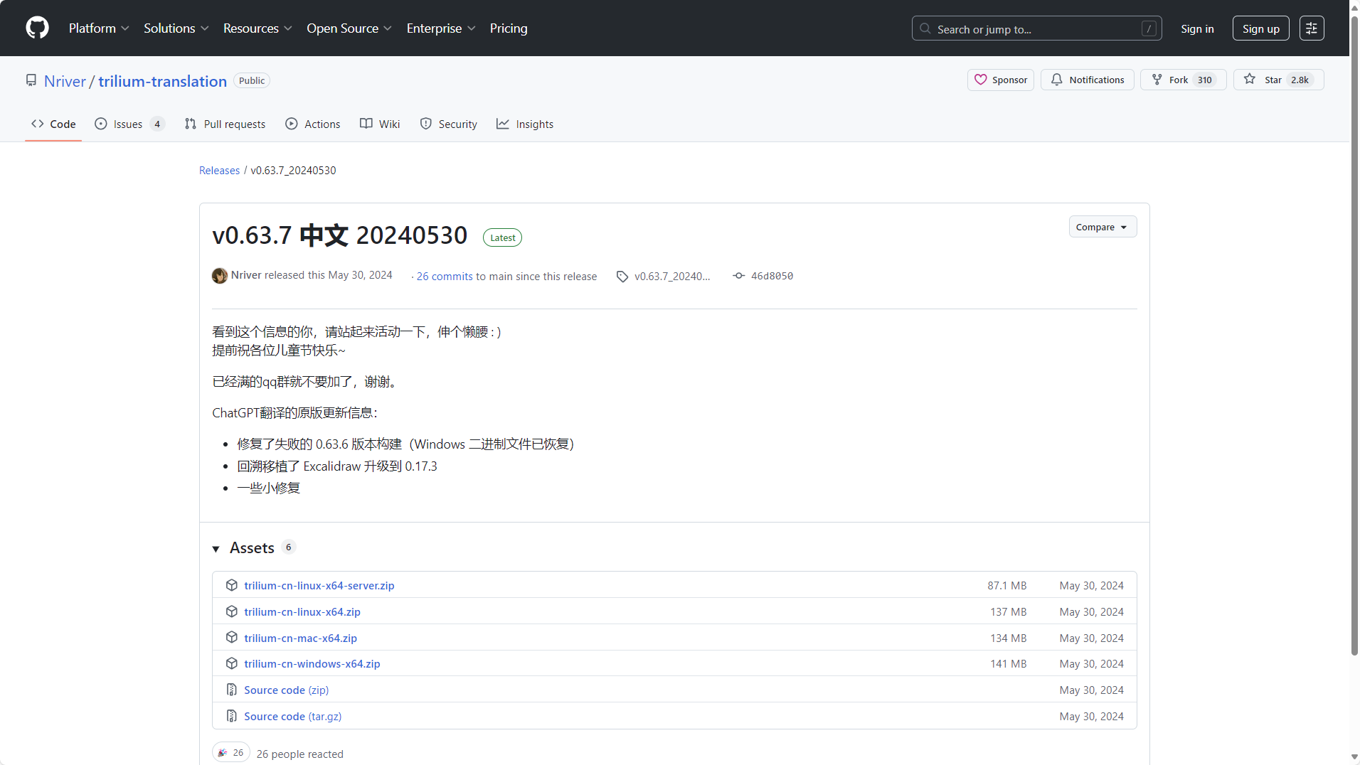 其桌面客户端的汉化由Nriver制作,trilium-cn-v0.63.7 GitHub源下载地址:点击这里