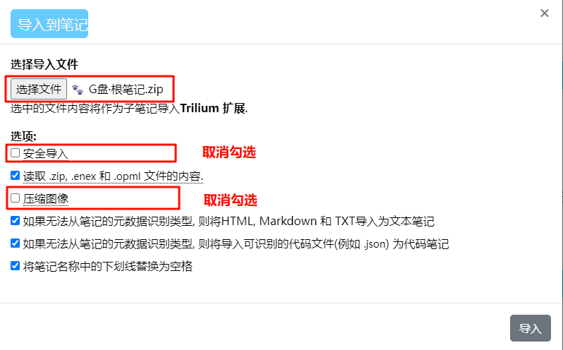 笔记导入时忘记 取消勾选:安全导入